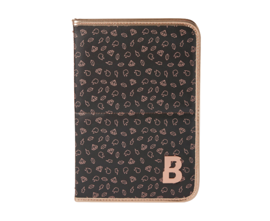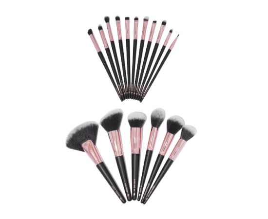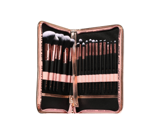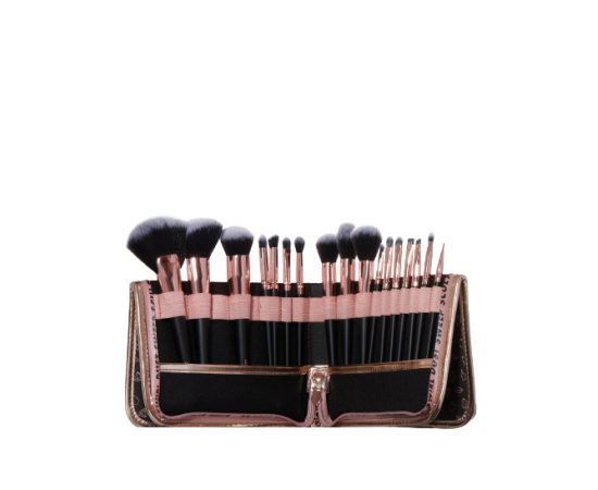 مجموعة من ثمانية عشر فُرَش باللون الأسود والذهبي الوردي مع حقيبة كبيرة بسحّاب.