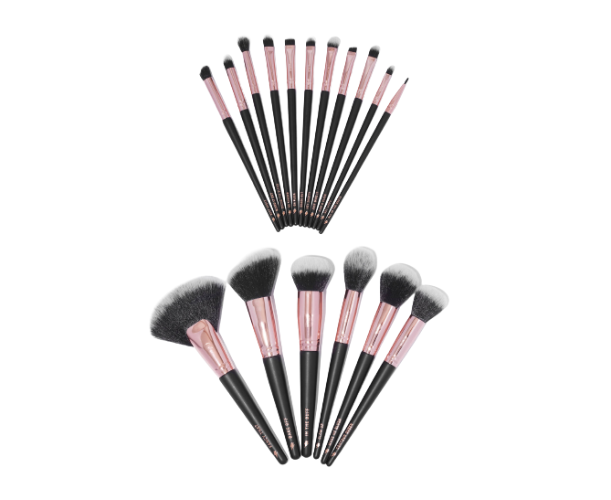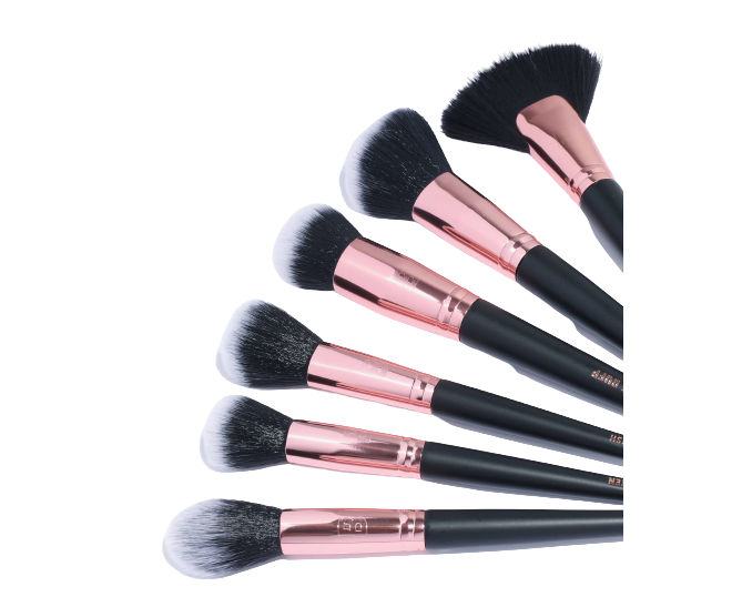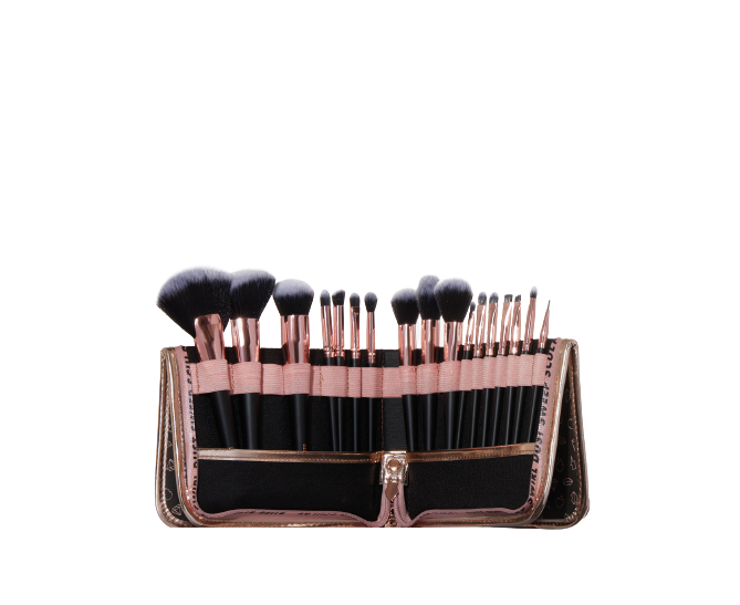 تحتوي مجموعة فُرَش Rose Gold Glam Brush Set على كل ما تحتاجينه للحصول على إطلالات جذابة، وهي متينة ومضادة للبكتيريا وسهلة الحمل أثناء السفر. تتميز هذه الفُرَش الأنيقة بمقابض خشبية باللون الأسود وحلقة باللون الذهبي الوردي وشعيرات فائقة النعومة باللونين الأسود والأبيض تحاكي ملمس الشعر الطبيعي. تكتمل مع عبوة متطابقة باللونين الأسود والوردي يمكن طيّها للخلف للحصول على حامل فرشاة .