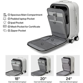 - 180° Front Open Design with Functional Pockets, Save Time Quick Access. It has well organized interior pockets, include ONE padded laptop pocket fits 15.6'' laptop, ONE iPad pocket, TWO zipper pockets. The main compartment of the luggage is roomy with adjustable cross-straps to fasten the clothes etc.