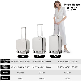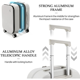 - 2021 New Patent Design Carry On Suitcase with 3rd Generation Aluminum Frame, Combined with German Bayer PC material which is called “Soft Steel”, good looking, durable and light weight.