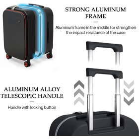 - 2021 New Patent Design Carry On Suitcase with 3rd Generation Aluminum Frame, Combined with German Bayer PC material which is called “Soft Steel”, good looking, durable and light weight.