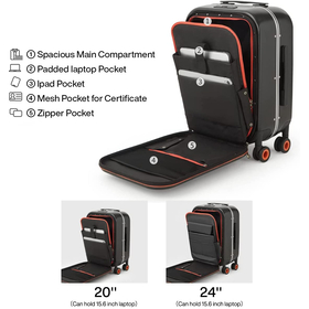 - 180° Front Open Design with Functional Pockets, Save Time Quick Access. It has well organized interior pockets, include ONE padded laptop pocket fits 15.6'' laptop, ONE iPad pocket, TWO zipper pockets. The main compartment of the luggage is roomy with adjustable cross-straps to fasten the clothes etc.